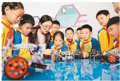 河北省承德市營(yíng)子區(qū)濱河路小學(xué)將機(jī)器人編程課引入學(xué)校,安排專業(yè)教師指導(dǎo)學(xué)生進(jìn)行機(jī)器人編程、機(jī)器人設(shè)計(jì)等學(xué)習(xí),讓學(xué)生零距離感受科技的魅力,激發(fā)創(chuàng)新意識(shí)和科學(xué)探索精神。圖為11月27日學(xué)校教師指導(dǎo)學(xué)生練習(xí)操作機(jī)器人。劉環(huán)宇攝(新華社發(fā))
