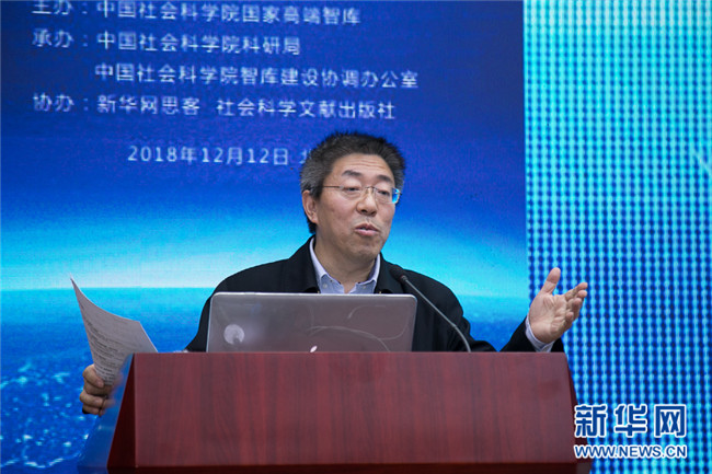 中國(guó)社會(huì)科學(xué)院科研局局長(zhǎng)、院智庫建設(shè)協(xié)調(diào)辦公室主任馬援致辭。肖斌 攝