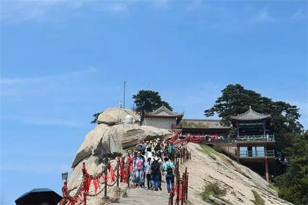 南峰海拔2154.9米,是華山最高主峰,也是五岳最高峰,古人尊稱它是“華山元首”。登上南峰絕頂,頓感天近咫尺,星斗可摘。舉目環(huán)視,但見群山起伏,蒼蒼莽莽,黃河渭水如絲如縷,漠漠平原如帛如綿,盡收眼底,使人真正領(lǐng)略華山高峻雄偉的博大氣勢(shì),享受如臨天界,如履浮云的神奇情趣。