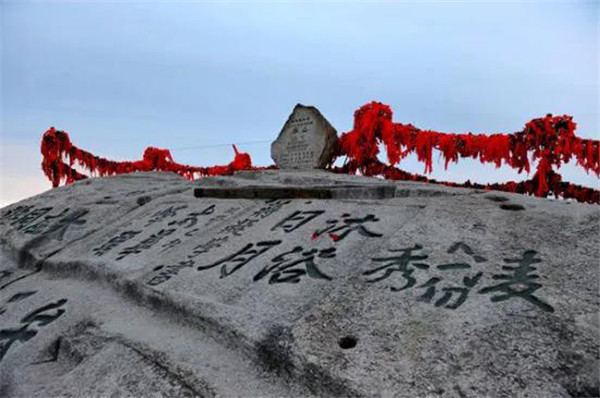 西峰海拔2082.6米,華山主峰之一,因位置居西得名。又因峰巔有巨石形狀好似蓮花瓣,古代文人多稱其為蓮花峰、芙蓉峰。袁宏道在他的《華山》中記述:“石葉上覆而橫裂”;徐霞客《游太華山日記》中也記述:“峰上石聳起,有石片覆其上,如荷花。”李白詩中有“石作蓮花云作臺(tái)”句,也當(dāng)指此石。