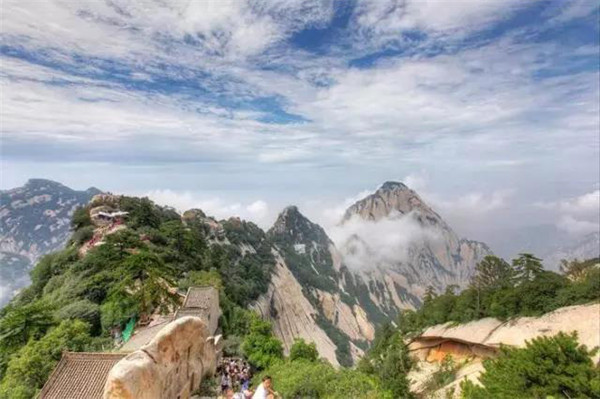 北峰海拔1614米,為華山主峰之一,因位置居北得名。北峰四面懸絕,上冠景云,下通地脈,巍然獨(dú)秀,有若云臺(tái),因此又名云臺(tái)峰。唐李白《西岳云臺(tái)歌送丹丘子》詩曾寫到:“三峰卻立如欲摧,翠崖丹谷高掌。白帝金精運(yùn)元?dú)?,石作蓮花云作臺(tái)。”