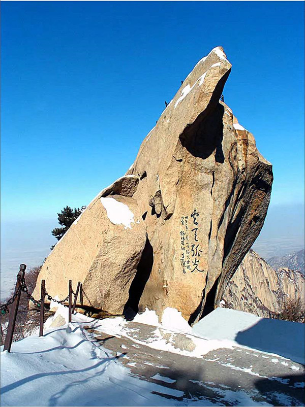 古人云:“山無石不奇,無純石不大奇”。華山之所以雄奇瑰偉,風(fēng)姿獨具,首先就在于它的主體由一塊純粹完整的巨型花崗巖構(gòu)成。遠古時代的地質(zhì)造山運動,由巖漿冷凝形成的垂直節(jié)理的花崗巖體構(gòu)成了華山奇險俊秀的自然景觀。作為一塊“天然巨石”,萬千年來,華山緊緊依偎著秦嶺,成為秦嶺主脈一座特立獨行的花崗巖山。憑借大自然風(fēng)云變幻的裝扮,華山的千姿萬態(tài)被有聲有色地勾畫出來。
