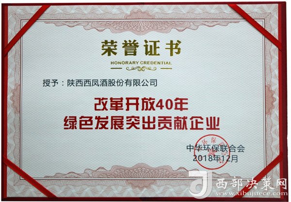 近日,在中華環(huán)保聯(lián)合會(huì)組織的“紀(jì)念改革開放40年中國(guó)企業(yè)綠色發(fā)展成就主題活動(dòng)”中,陜西西鳳股份公司因在綠色發(fā)展、生態(tài)文明、環(huán)境保護(hù)、節(jié)能減排等方面的突出成績(jī),榮獲改革開放40年“綠色發(fā)展突出貢獻(xiàn)企業(yè)”殊榮。標(biāo)志著該公司在實(shí)施綠色發(fā)展戰(zhàn)略、生產(chǎn)綠色產(chǎn)品、使用綠色技術(shù)等方面的卓越成果得到國(guó)家環(huán)保部門的充分肯定,達(dá)到了企業(yè)經(jīng)濟(jì)效益、社會(huì)效益、環(huán)境保護(hù)效益的有機(jī)統(tǒng)一。
