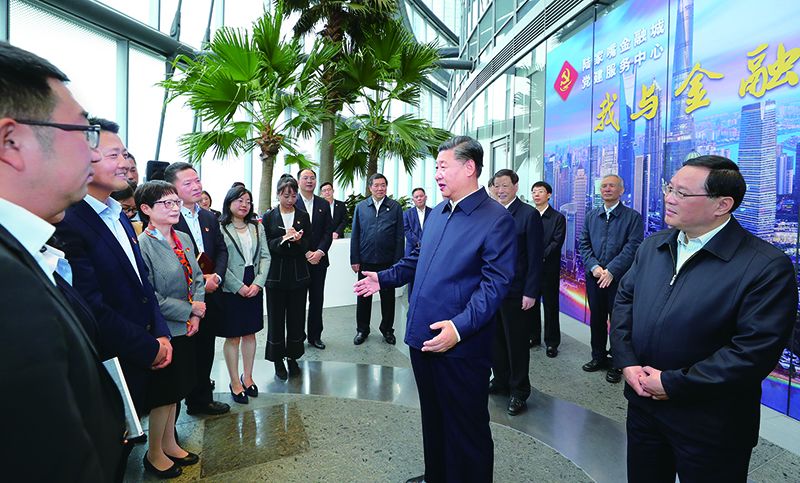 2018年11月6日至7日,中共中央總書記、國家主席、中央軍委主席習近平在上海考察。這是6日上午,習近平在上海中心大廈22層的陸家嘴金融城黨建服務(wù)中心,同正在聯(lián)合開展主題黨日活動的企業(yè)黨員親切交談。 新華社記者 謝環(huán)馳/攝