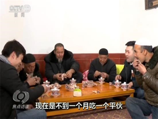 吃平伙是東鄉(xiāng)族老百姓的一個(gè)傳統(tǒng),就是大家買一只羊,平攤價(jià)格以后搭伙吃羊肉。過(guò)去,只有家里娶媳婦、蓋房子這樣的大事,才能吃個(gè)平伙。現(xiàn)在生活好了,家里請(qǐng)客的時(shí)候也吃平伙,今天,馬麥志要請(qǐng)客,不用大家出份子錢了。他說(shuō)大兒子在外面打工,自己在干清潔工,媳婦在車間里面炸油馃馃,收入應(yīng)該有3萬(wàn)多元。