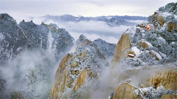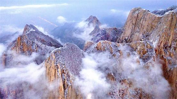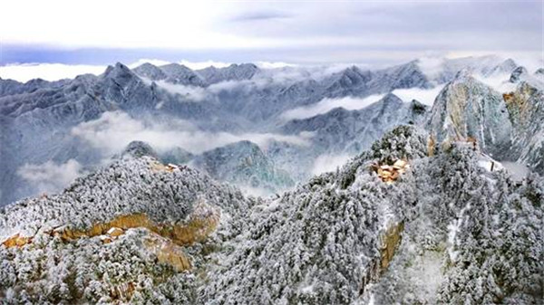 一場大雪將西岳華山變成白雪皚皚的世界,白雪與蒼翠的華山奇松、靈動(dòng)的云海交相輝映,如夢如幻;滿山遍野玉樹瓊花,樹枝上通體的霧凇晶瑩剔透,繪就冬日畫境,美不勝收,游人如置身人間仙境。