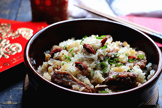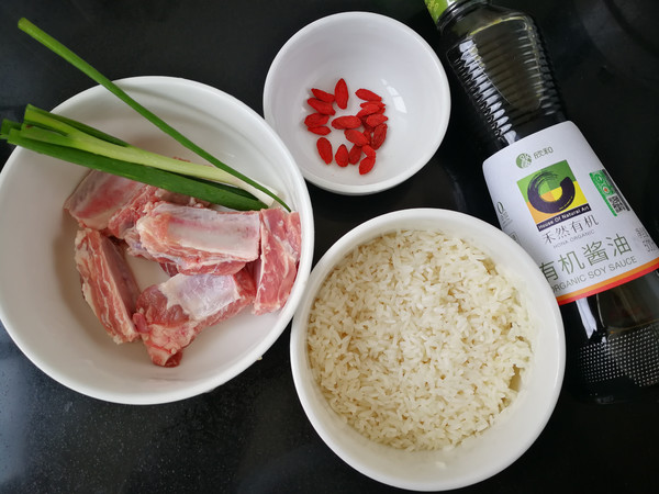 主料:排骨250克 糯米150克 枸杞子10克 小蔥10克 花生油10克 姜粉5克