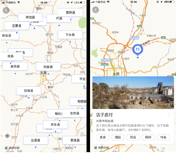 “山西省旅游扶貧地圖”首批上線100個旅游扶貧示范村,是山西省文化和旅游廳與高德地圖合作的第一步。隨后,第二批示范村(200個)也將上線,實現(xiàn)示范村全覆蓋,更好地助力旅游扶貧,幫助貧困群眾增收脫貧。