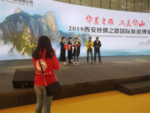 會(huì)上,華山景區(qū)通過視頻播放,整點(diǎn)有獎(jiǎng)問答,掃碼送禮,咨詢解答并對國外及其他展位主動(dòng)問訪,贈(zèng)送資料,邀請走進(jìn)華山等一系列方式進(jìn)行宣傳。會(huì)上,播放了“華山+”旅游產(chǎn)品,展示了橋陵、惠陵、華潼公司、西峰索道等大型展架,吸引了眾多游人駐足觀看,積極咨詢,收獲頗多。因此,獲得了組委會(huì)頒發(fā)的“最佳創(chuàng)意獎(jiǎng)”。