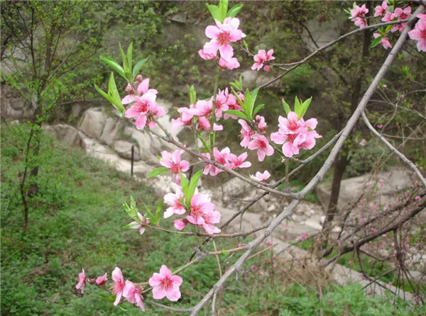華山的桃花,主要集中在黃埔峪的峽谷里、路邊上,星星點點開在半山的崖畔上,當(dāng)春天來時,山中的灌木似乎還沒有從冬季中醒來,而桃花卻一下子盛開而來。將整個黃埔峪狹長的路徑印成一段桃紅色。