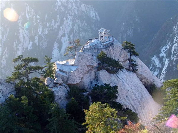 華山古稱“西岳”,是我國著名的五岳之一,南接秦嶺,北瞰黃渭,扼守著大西北進出中原的門戶。華山由一塊完整碩大的花崗巖體構(gòu)成,有東、西、南、北、中五峰,主峰有南峰“落雁”、東峰“朝陽”、西峰“蓮花”,三峰鼎峙。最高峰也是五岳最高峰—南峰“落雁”海拔2154.9米。
