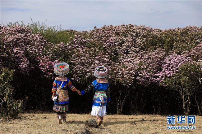 4月23日,兩名苗族游客身著盛裝登山賞花。 近日,四川省攀枝花市鹽邊縣龍頭山十余萬(wàn)畝野生杜鵑花盛開(kāi),吸引省內(nèi)外游客前來(lái)登山賞花。 龍頭山位于四川省攀枝花市鹽邊縣北部的紅寶苗族彝族鄉(xiāng)境內(nèi),這里的野生杜鵑花花期為2月至5月。 新華社記者 江宏景 攝