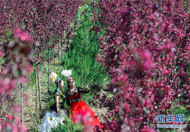 當(dāng)日,正在新疆昌吉回族自治州呼圖壁縣舉行的第四屆海棠花季鄉(xiāng)村文化旅游節(jié)吸引了眾多游客。目前,新疆天山北麓海棠花相繼綻放,進(jìn)入最佳觀賞期。 新華社發(fā)(丁磊攝)