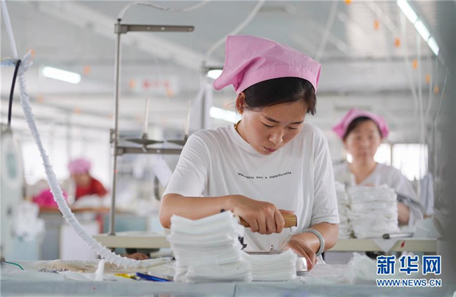 5月16日,鹽山縣慶云鎮(zhèn)村民在凱瑞斯服裝廠工作。該服裝廠總部位于雄安新區(qū)容城縣,為配合雄安新區(qū)產(chǎn)業(yè)轉(zhuǎn)型升級,于2018年初來到河北省鹽山縣開設(shè)工廠。 新華社記者 邢廣利 攝