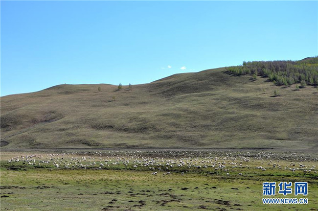 5月22日,羊群在內(nèi)蒙古興安盟境內(nèi)的草原上吃草。近期,隨著降雨量增多、氣溫回暖,內(nèi)蒙古草原陸續(xù)進入返青期。新華社記者殷耀攝