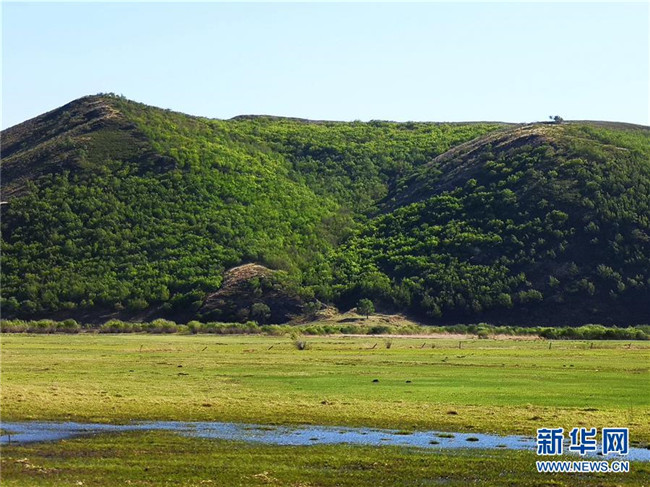 這是5月22日拍攝的內(nèi)蒙古興安盟境內(nèi)一處山巒、草原和濕地風(fēng)光(手機拍攝)。近期,隨著降雨量增多、氣溫回暖,內(nèi)蒙古草原陸續(xù)進入返青期。新華社記者殷耀攝