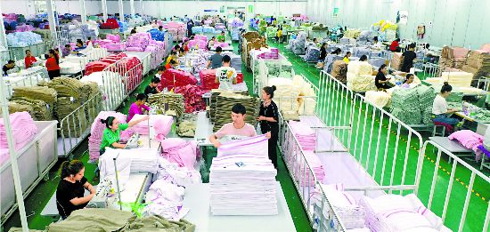 5月30日,來自喀什、和田等地的青年在阿拉爾潔麗雅新疆新越絲路有限公司生產(chǎn)車間工作。目前,該公司已接收喀什、和田等地的2200余名富余勞動(dòng)力就業(yè),帶動(dòng)112名建檔立卡貧困戶脫貧。王志清 攝