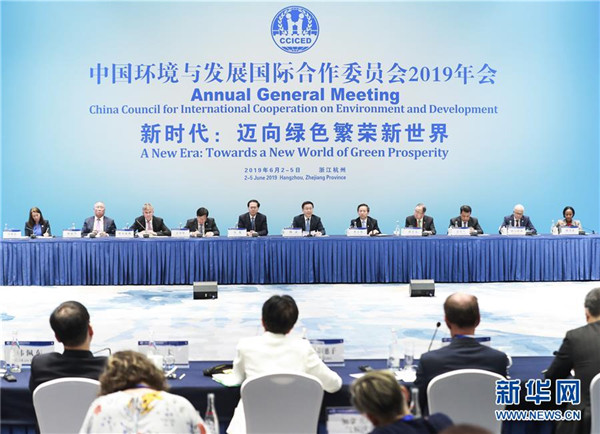 6月4日,中共中央政治局常委、國(guó)務(wù)院副總理、中國(guó)環(huán)境與發(fā)展國(guó)際合作委員會(huì)主席韓正在浙江省杭州市出席國(guó)合會(huì)2019年年會(huì)并講話。新華社記者龐興雷攝