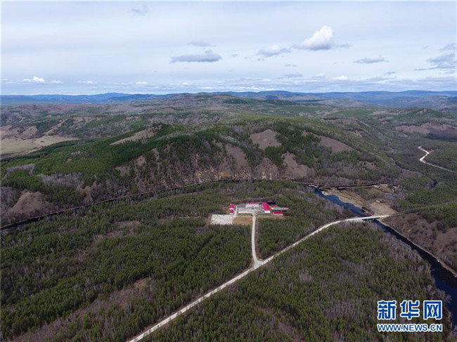 這是奇乾中隊(duì)的營(yíng)地,距離最近的城鎮(zhèn)約150公里,被稱(chēng)為“林海孤島”(5月19日無(wú)人機(jī)拍攝)。新華社記者 劉磊 攝