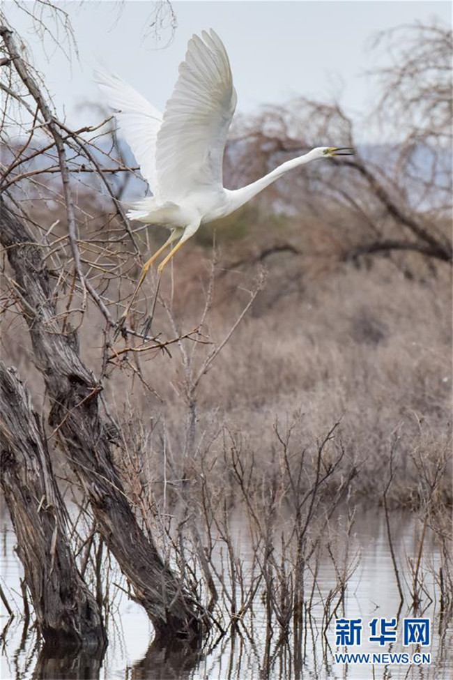 6月9日,白鷺在新疆烏倫古湖國家濕地公園休憩。 新華社記者 丁磊 攝