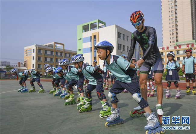 去年以來,河北唐山遵化市第六實驗小學把輪滑運動作為特色社團活動引進校園,成立了輪滑訓練隊,聘請專職教練指導學生練習,激發(fā)了學生們對運動的熱情,也強健了他們的體魄。 新華社發(fā)(劉滿倉 攝)