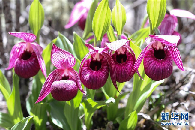 這是在四川黃龍自然保護(hù)區(qū)黃龍溝拍攝的西藏杓蘭(6月12日攝)。  新華社記者江宏景攝