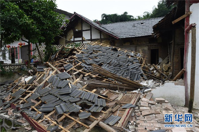 6月18日在長(zhǎng)寧縣雙河鎮(zhèn)拍攝的垮塌的房屋。新華社記者 陳地 攝