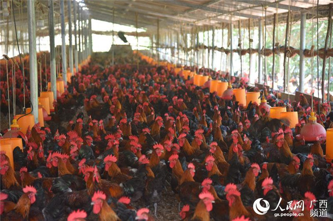 林下養(yǎng)雞產(chǎn)業(yè)作為田林縣“5+2”特色產(chǎn)業(yè)之一,在助推脫貧攻堅(jiān)中發(fā)揮著積極作用。近年來,該縣林下養(yǎng)雞產(chǎn)業(yè)穩(wěn)步發(fā)展,引進(jìn)銘翔、富鳳等養(yǎng)殖公司來激活林下產(chǎn)業(yè)的“血液”,發(fā)揮養(yǎng)殖公司在技術(shù)、管理、市場(chǎng)等方面的優(yōu)勢(shì),大力推廣“公司+基地+合作社+農(nóng)戶”的產(chǎn)業(yè)化經(jīng)營(yíng)模式,形成規(guī)模集群效應(yīng)。2018年,田林全縣林下養(yǎng)雞年出欄從最初的5000羽發(fā)展到650萬羽,產(chǎn)值3000余萬元,成為貧困群眾脫貧致富的主要產(chǎn)業(yè)。(龐革平、黃艷瓊)