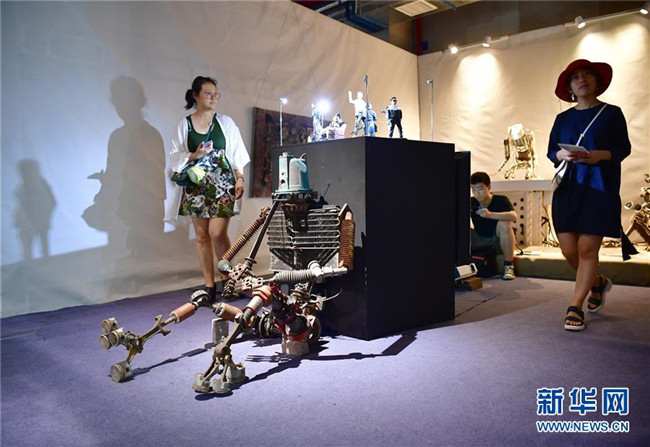 觀眾在參觀西安美術(shù)學(xué)院實(shí)驗(yàn)藝術(shù)系學(xué)生展出的畢業(yè)設(shè)計(jì)作品(6月10日攝)。新華社記者邵瑞攝