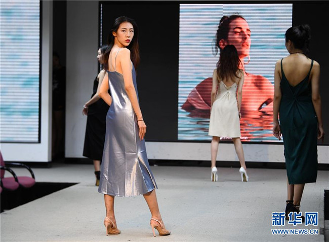 西安工程大學(xué)2018級(jí)服裝設(shè)計(jì)與表演專業(yè)的學(xué)生在練習(xí)動(dòng)態(tài)造型展示(5月24日攝)。新華社記者張博文攝