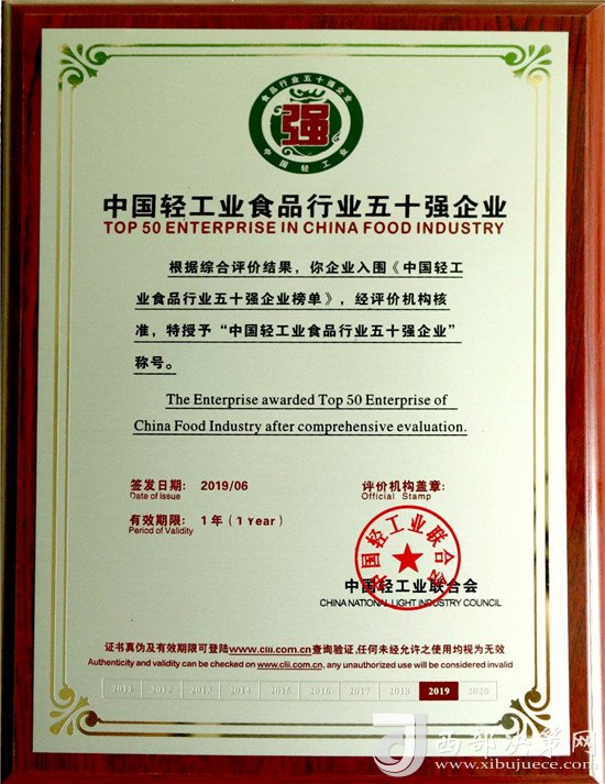 近日,由中國輕工業(yè)聯(lián)合會(huì)主辦,主題為“強(qiáng)化科技創(chuàng)新,服務(wù)美好生活”的“中國輕工業(yè)百強(qiáng)企業(yè)高峰論壇”在北京召開。會(huì)上,中國輕工業(yè)聯(lián)合會(huì)公布了2018年度中國輕工業(yè)食品行業(yè)五十強(qiáng)企業(yè),西鳳股份公司憑借良好的發(fā)展業(yè)績、市場口碑、行業(yè)競爭力及日益增強(qiáng)的品牌影響力,被中國輕工業(yè)聯(lián)合會(huì)授予“中國輕工業(yè)食品行業(yè)五十強(qiáng)企業(yè)”榮譽(yù)稱號,并受到表彰獎(jiǎng)勵(lì)。