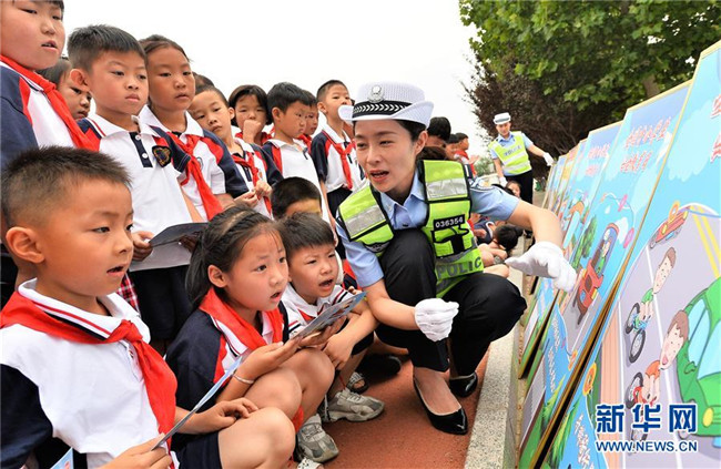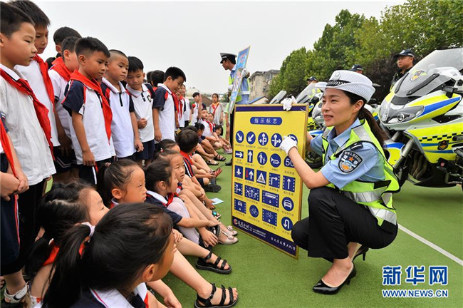 暑假將至,山東省棗莊市臺兒莊區(qū)實驗小學(xué)組織開展“暑假安全伴我行”主題安全教育活動,向?qū)W生普及交通、消防安全知識,提高學(xué)生自我防護能力。 新華社發(fā)(高啟民 攝)
