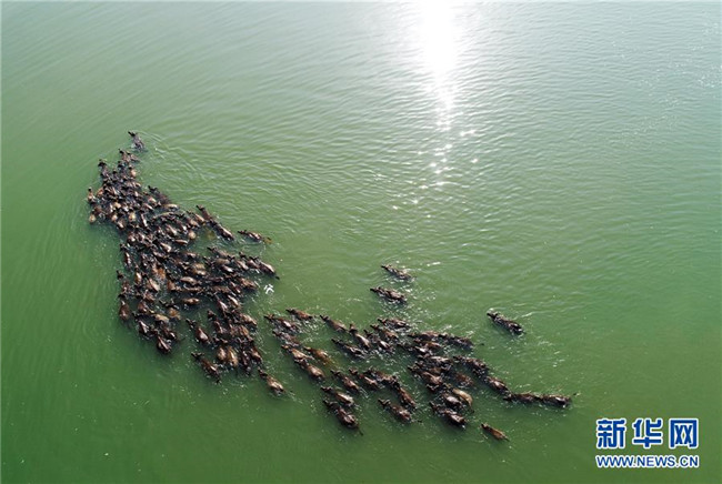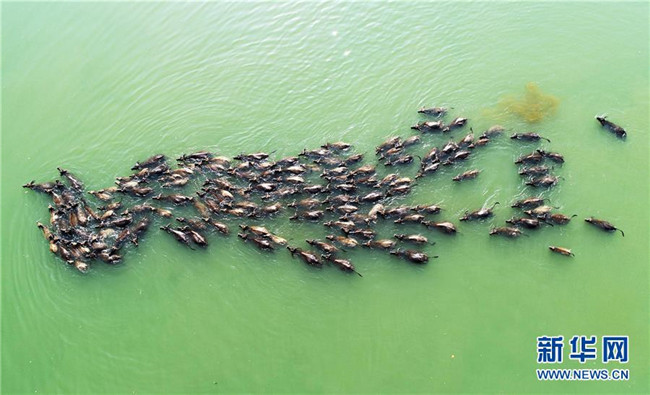 四川蓬安:百牛渡江吃草