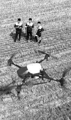 在山東省聊城市茌平縣賈寨鎮(zhèn)賈寨西村,植保人員操控著植保無人機(jī)給玉米噴灑藥物。趙玉國攝/光明圖片