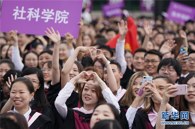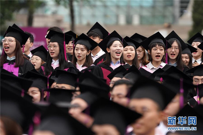 當日,清華大學舉行2019年本科生畢業(yè)典禮和學位授予儀式,3000余名本科畢業(yè)生身著學位服參加典禮。 新華社記者鞠煥宗攝