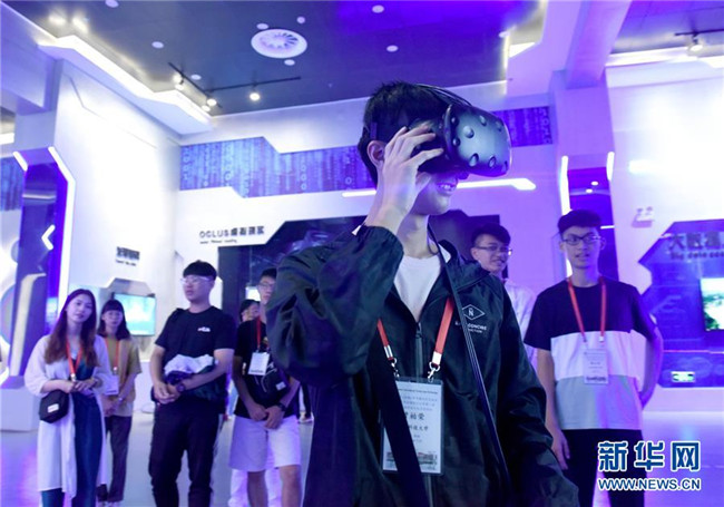 7月9日,大學(xué)生走進(jìn)安徽淮南大數(shù)據(jù)展示中心,通過虛擬現(xiàn)實(shí)設(shè)備,體驗(yàn)現(xiàn)代化井下煤礦開采場景。新華社發(fā)(陳彬攝)