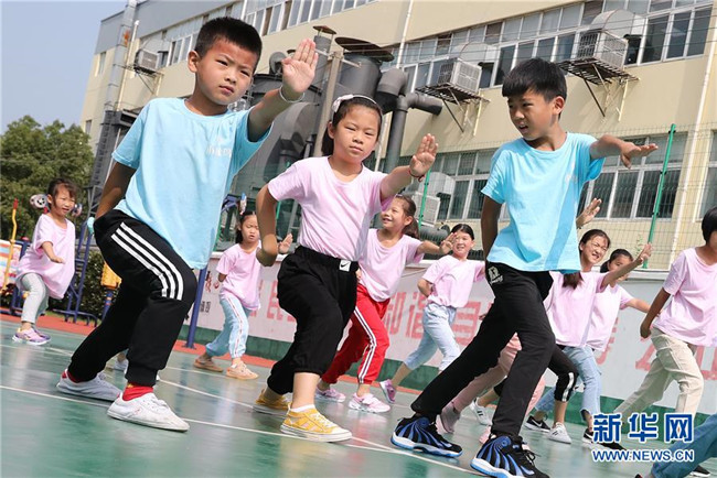 “小候鳥(niǎo)”們?cè)谖湫g(shù)課前做熱身運(yùn)動(dòng)(7月15日攝)。