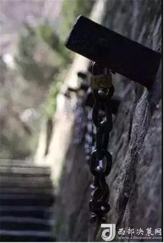 登華山有三道險(xiǎn)關(guān),合稱華山三大險(xiǎn),當(dāng)?shù)亓鱾髦@樣一句民謠:“千尺幢, 百尺峽,老君犁溝往上爬。”