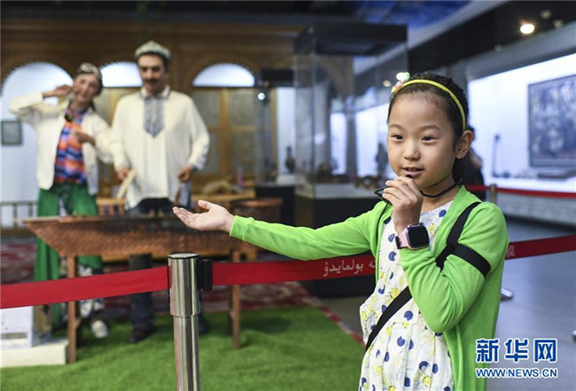 來自烏魯木齊市第59小學(xué)的文藝揚是一名在新疆博物館進行志愿服務(wù)的“小小講解員”,開學(xué)要上二年級的她每周到新疆博物館做兩次志愿服務(wù),每次大概用一上午的時間講三到四場。文藝揚說:“通過做講解我學(xué)到了好多知識,好多游客都喜歡聽我的講解,我覺得特別開心!”