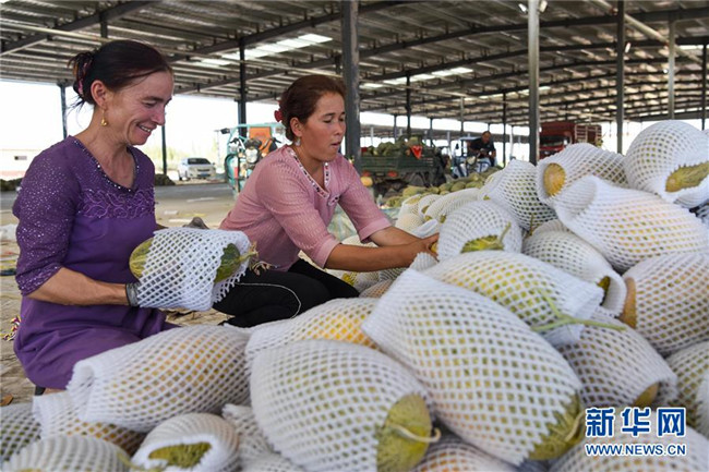 夏秋之交,正是新疆瓜果飄香的時節(jié)。近日,喀什地區(qū)伽師縣20余萬畝伽師瓜大量上市。在瓜田里,瓜農(nóng)們忙著采摘伽師瓜;在批發(fā)交易市場,到處可見包裝、搬運(yùn)伽師瓜的瓜農(nóng)和客商,一派繁忙的景象。