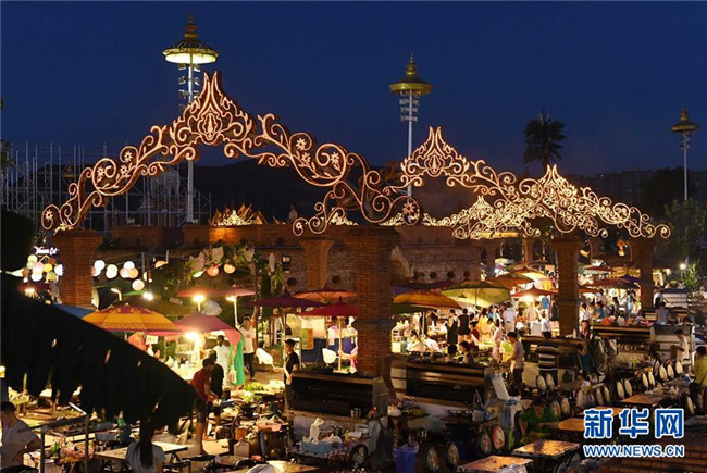 夜幕降臨,云南省西雙版納傣族自治州景洪市瀾滄江畔燈火璀璨,人頭攢動(dòng),熱鬧非凡。