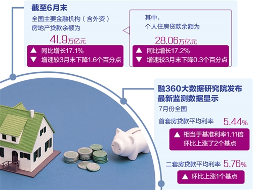 融360大數(shù)據(jù)研究院發(fā)布的最新監(jiān)測數(shù)據(jù)顯示,7月份全國首套房貸款平均利率為5.44%,相當于基準利率1.11倍,環(huán)比上漲了2個基點;二套房貸款平均利率為5.76%,環(huán)比上漲1個基點。從數(shù)據(jù)上看,全國房貸利率水平在下半年有所反彈。