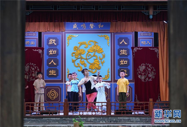 暑假期間,河北省秦皇島市北戴河“裴艷玲藝術(shù)傳承基地”——梨園小院開(kāi)設(shè)京劇培訓(xùn)班,免費(fèi)教授孩子們京劇表演藝術(shù),同時(shí)借助基地平臺(tái)為中外游客演出,鍛煉孩子們的表演技能,傳承戲曲藝術(shù)。 新華社記者 邢廣利 攝