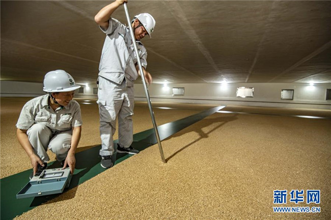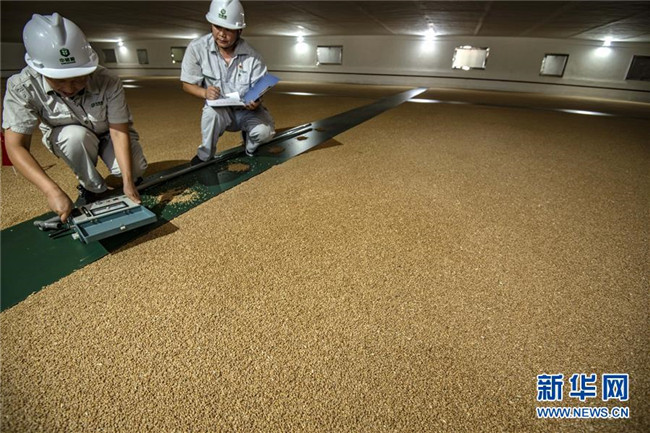 8月25日,中儲糧襄陽直屬庫的職工在糧庫內(nèi)進行糧情檢測。