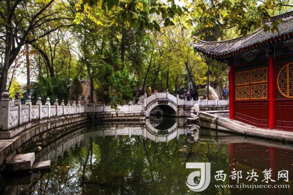 康有為曾寫詩贊美:谷口清泉引曲流,長廊回醫(yī)樹無憂。泉水岳色可忘出,讓與希夷睡萬秋。