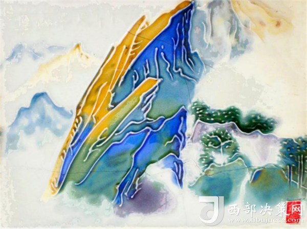 60~70年代瓷板畫框《華山千尺幢》