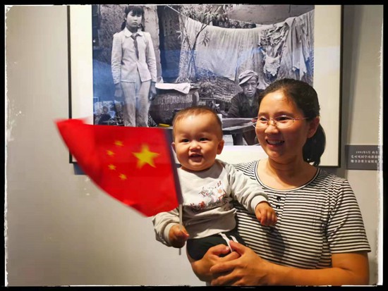 2019年9月,毛可英與自己當(dāng)年的照片合影。