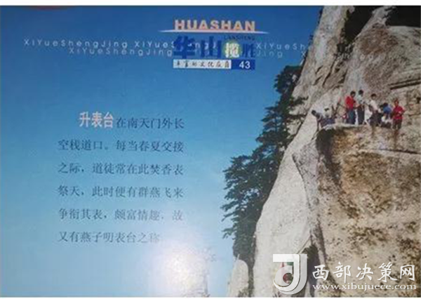 仰天池、洞里甕、全真崖、升表臺(tái),以上就是華山四大謎,帶大家游覽了一番,您覺得有更好的解釋嗎?如果有可以給我們留言,讓我們大家共同探索華山的未解之謎,用彩筆為華山之謎畫下最美的謎底吧!(供稿:華旅集團(tuán)營銷中心)