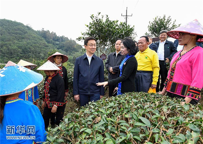 11月9日至11日,中共中央政治局常委、國務(wù)院副總理韓正在海南調(diào)研。圖為11月10日,韓正在五指山椰仙有機(jī)茶生態(tài)觀光園,了解高山雨林有機(jī)茶種植等特色產(chǎn)業(yè)培育、病蟲害物理防治、種植產(chǎn)業(yè)和旅游產(chǎn)業(yè)融合發(fā)展等情況,與正在茶園工作的當(dāng)?shù)剞r(nóng)民和貧困戶交流。 新華社記者 高潔 攝