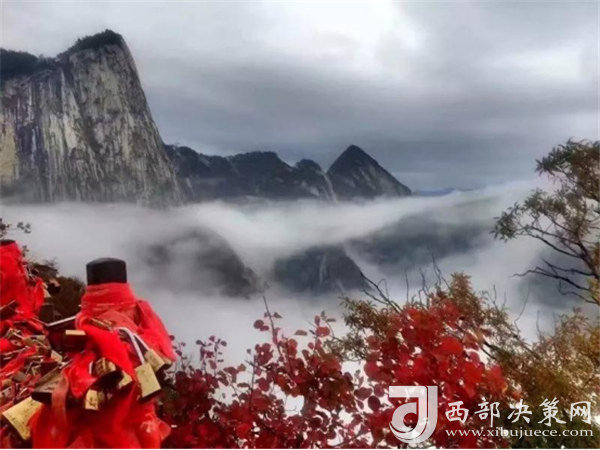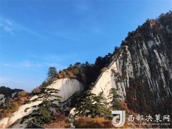 又因峰巔有巨石形狀好似蓮花瓣,古代文人多稱其為蓮花峰、芙蓉峰。西峰為一塊完整巨石,渾然天成。西北絕崖千丈,似刀削鋸截,其陡峭巍峨、陽剛挺拔之勢(shì)是華山山形之代表,因此古人常把華山叫蓮花山。西峰南崖有山脊與南峰相連,脊長300余米,石色蒼黛,形態(tài)好像一條屈縮的巨龍,人稱為屈嶺,也稱小蒼龍嶺,是華山著名的險(xiǎn)道之一。